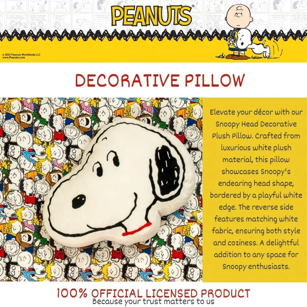 - Elevate your décor with our Snoopy Head Decorative Plush Pillow.